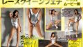片足を上げたレースクイーンポーズでは、遠慮なくカメラが股間下へと潜り込んでいきます。凛々しくもセクシーな膝立ち、お尻を突き出した四つん這いと、ハイレグの魅力を引き出す姿勢の数々。光沢パンスト・ハイレグ光沢レオタードの映像美と言ってもいいのではないでしょうか。