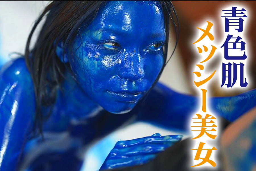 ブルーの絵の具を使用したメッシー美女の登場です!オイルと特殊顔料を調合しているので、今までのメッシー作品とはテカリ具合が違います。まるで名作映画ア○ターの世界!?おっぱい、お尻、おなか、とゆっくり念入りに青い絵の具を塗り込み、さらに顔、髪の毛、足の指まで青い肌のメッシー美女の完成!!青色美女は自分でオマンコを擦りオナニーを始めちゃいます。男がねっとりじっくりと撫でまわし、形の良いおっぱいを弄り乳首責め、さらにネチョネチョ濃厚プレイへ!最後の仕上げはいつもの銀粉をかけまくり、ドロッドロの銀粉美女に大変身!ブルーからシルバーへと変化する衝撃のメッシーワールドをご堪能ください!